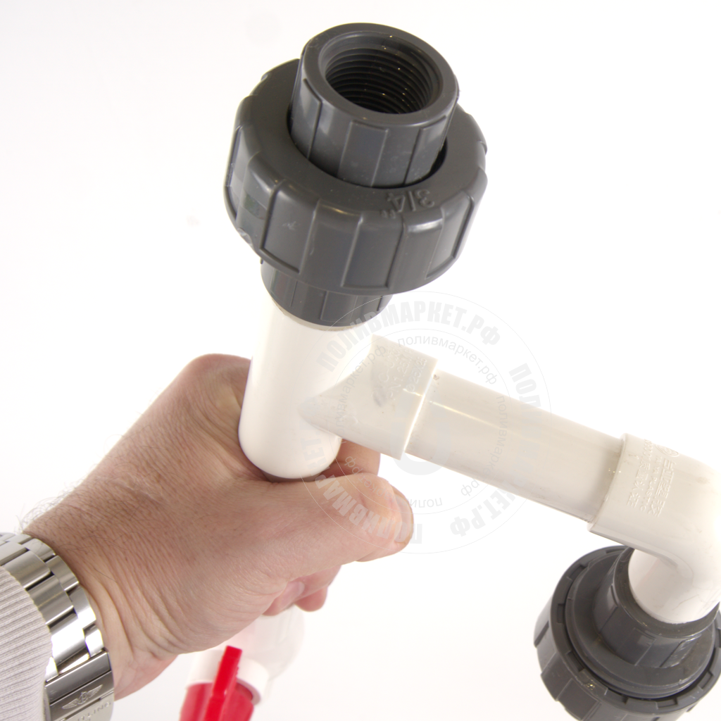 Обвязка позволяет без труда подключить инжектор Вентури системой байпас, а это значит что не произойдет потери в производительности, пропускная способность магистрали в которую установили инжектор не измениться. Кроме того, установленный на обвязке кран позволяет перераспределять поток воды между контурами, увеличивая или уменьшая скорость прохождения воды в самом инжекторе, тем самым регулируя скорость и объем всасывания удобрений. Все муфты установленные на обвязке разъемные (американка), позволяют без труда врезать обвязку в магистраль и легко установить инжектор на свое место.