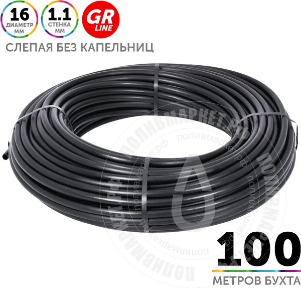 - Трубка слепая без капельниц GREEN RAIN LP диаметр 16 мм, стенка 44 mil, черная, для капельного полива