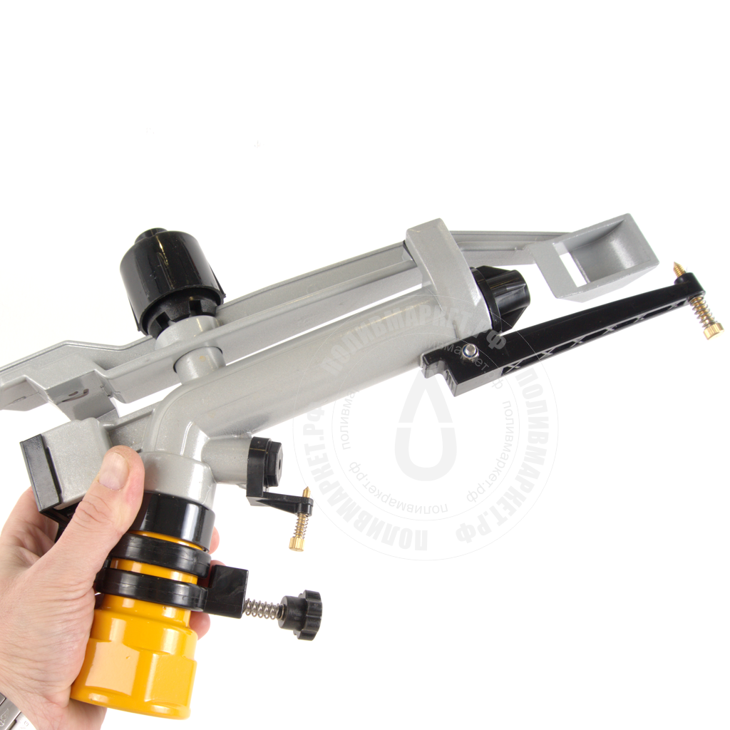 Латунная водяная пушка, применяется как для орошения, так и для пылеподавления на объектах. Корпус выполнен из латуни и алюминия, имеет два сопла, дальнего и малого радиуса, струя может быть отрегулирована игольчатым винтом, сектор полива регулируется. В комплекте 5 сопел. Не боится загрязненной воды, поскольку не имеет шестереночного привода, вода проходит по корпусу попадая сразу в сопла.